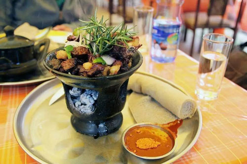 作为埃塞的主食,它已经有3000年的历史。顺便说一下,吃英吉拉的时候,不用筷子不用刀叉,只能手抓。非洲人就是如此豪放的!