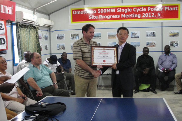 MD issued the award of thank to the Managing Director of NIPP and the Managing Director of EPK the project consultant from Poland for their support on the Omotosho Phase-II Power Power project. The diligent work of all parties and efficient cooperation as a whole project made the project gain 3 months ahead of schedule with good quality.