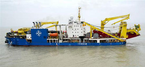 Tiankun is capable of dredging 6,000 cubic meters of sand or clay per hour