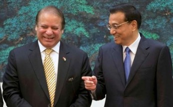 Pakistan's Prime Minister Nawaz Sharif shares a light moment with Chinese Premier Li Keqiang before a signing ceremony held at the Great Hall of the People in Beijing on Friday. Reuters